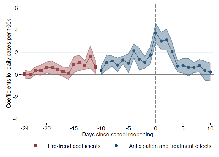 In line with their results on school closures, the authors find that concerns about the return to full schooling capacity after the summer holidays were unsubstantiated. Infections among children and adults did not rise with the start of the new academic year.