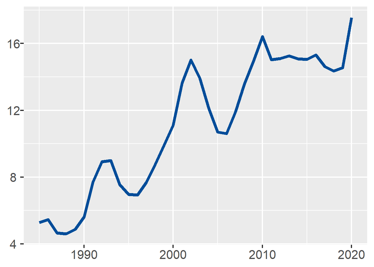 The results suggest that the share of zombie companies has increased considerably over the past three decades, rising from 4% in the late 1980s to more than 17% in 2020. The increase was not steady but occurred in the form of upward level shifts linked to major business cycle turning points and financial crises.